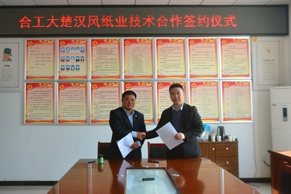 威尼斯9499登录入口项宏发教授和楚汉风纸业有限公司法人张彬代表校企双方签署技术开发合作协议。