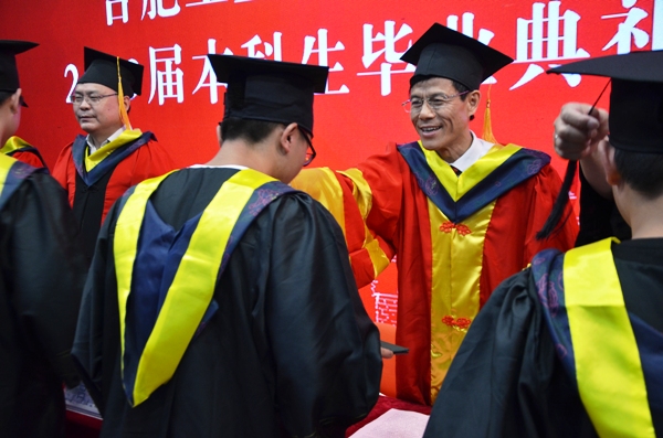 在庄严的国歌声中,威尼斯9499登录入口2019届本科毕业生学士学位授予仪式拉开帷幕。季益洪向获得学士学位的毕业生表示热烈祝贺,他勉励全体毕业生志存高远,树立远大理想;热爱祖国,勇担时代重任;锤炼品德,勇于砥砺奋斗;懂得感恩,积极回报社会,并表示:“今后不管你们身居何处、任职何方,请时刻关注学校的发展。希望你们记住,学校永远是你们坚强的后盾,学校的发展也离不开你们的大力支持。欢迎大家常回家看看!”