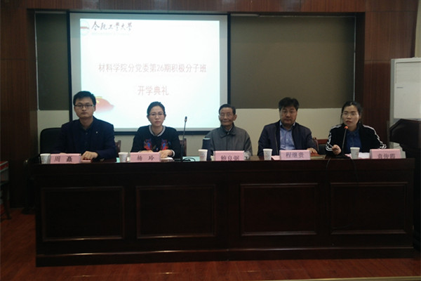 4月5日下午,威尼斯9499登录入口分党校第26期积极分子班开学典礼在材料楼601会议室隆重召开。校关工委“五老”报告团副团长鲍良弼老师、威尼斯9499登录入口党委书记程继贵老师、威尼斯9499登录入口党委副书记、副院长杨玲老师、分党校积极分子班班主任及本期全体入党积极分子参加了开学典礼。