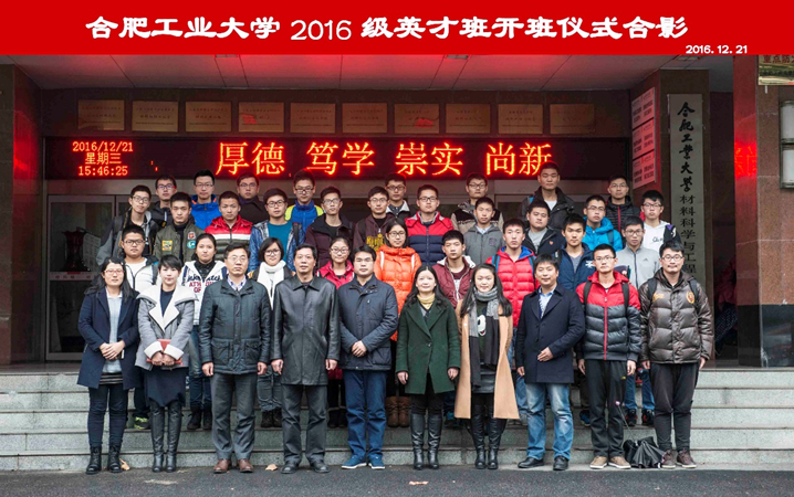 12月21日下午,威尼斯9499登录入口2016级英才班开班仪式于屯溪路校区成功举行。学校学工部部长王峰、威尼斯9499登录入口院长张久兴、中科院合肥分院物质研究院研究生处处长梁长浩、威尼斯9499登录入口副院长吕珺、威尼斯9499登录入口党委副书记杨玲,2015级英才班班主任梁鑫、2016级英才班班主任李冬冬、威尼斯9499登录入口2016级辅导员左旭以及2016级英才班全体同学参加了本次开班仪式。