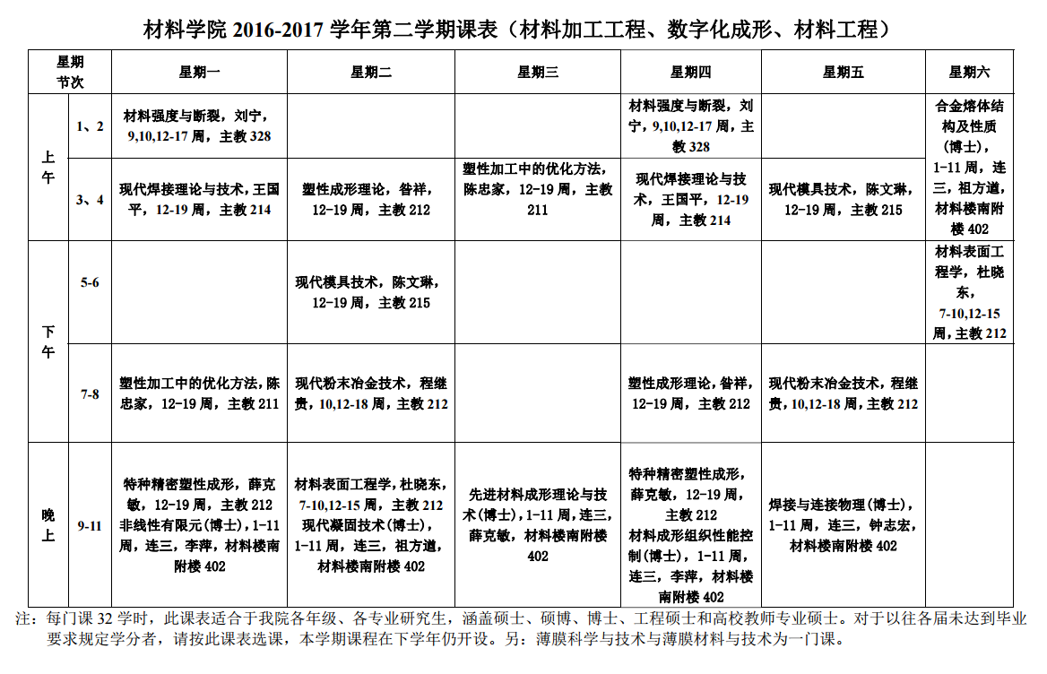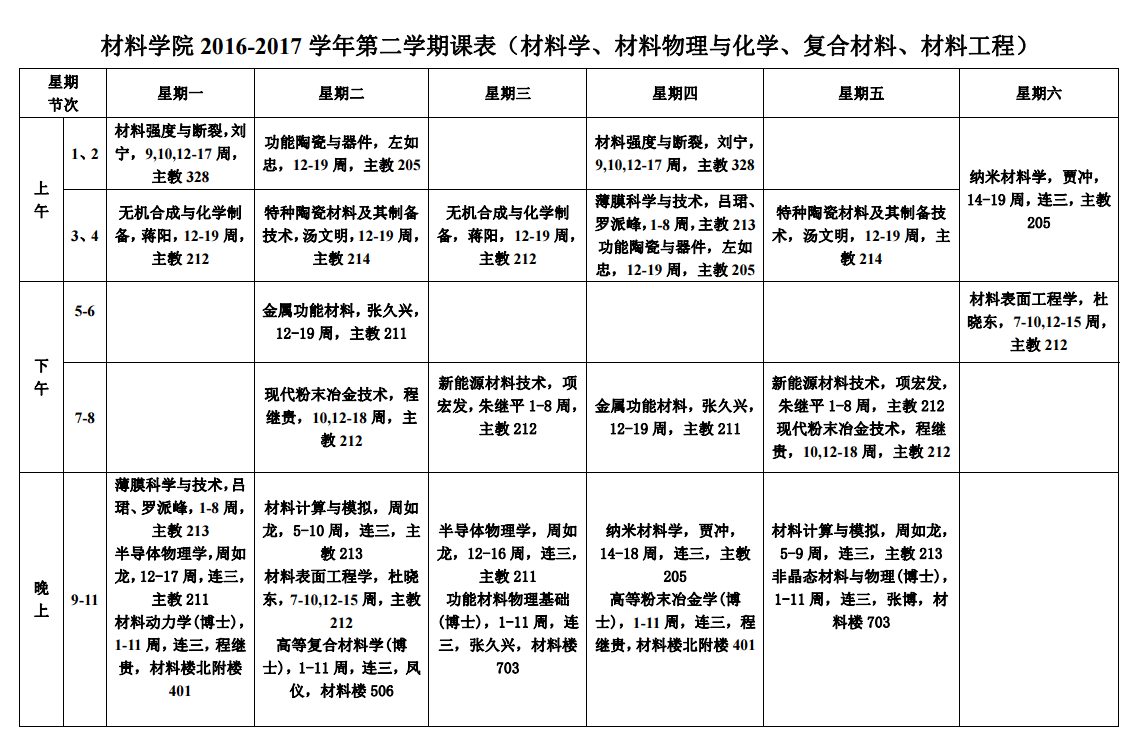 威尼斯9499登录入口 2016-2017 学年第二学期课表