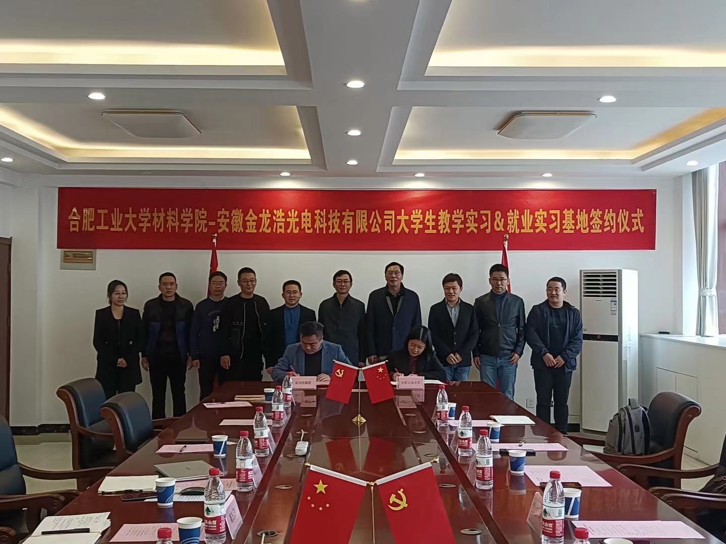 会上,双方领导签署《威尼斯9499登录入口大学生就业实习基地协议书》、《威尼斯9499登录入口-安徽金龙浩光电科技有限公司大学生教学实习基地协议书》。