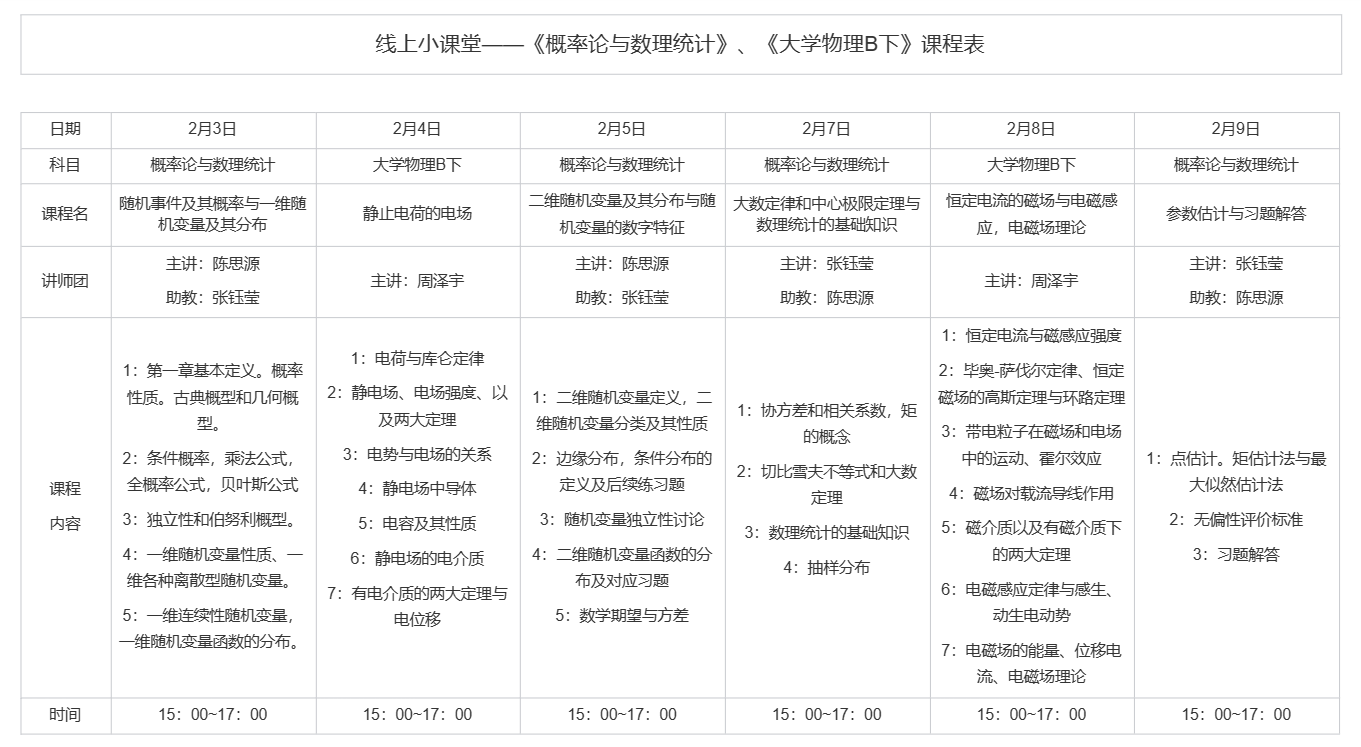 “在线小讲堂”主要教授内容为《概率论与数理统计》《大学物理B(下)》两门通识教育必修课。活动前期,学院在线上公开招募讲师团成员,共计选拔6名朋辈讲师参与线上小课堂活动。朋辈讲师在授课前认真制定教学计划,集体备课,做好充分授课准备。活动过程中,讲师们针对课程基础知识和常考易考例题,帮助同学们梳理知识架构、查漏补缺。课堂的交流环节中,小讲师也耐心地解答同学困惑,营造良好的线上课堂氛围。为适应不同同学的学习节奏,学院同时开展“线上自习室”活动,以腾讯会议为载体,以高自由度为原则,鼓励同学们自行规划学习。同学们每日进入会议后便自行安排复习,自习室里浓厚的学习氛围在一定程度上起到督促作用。
