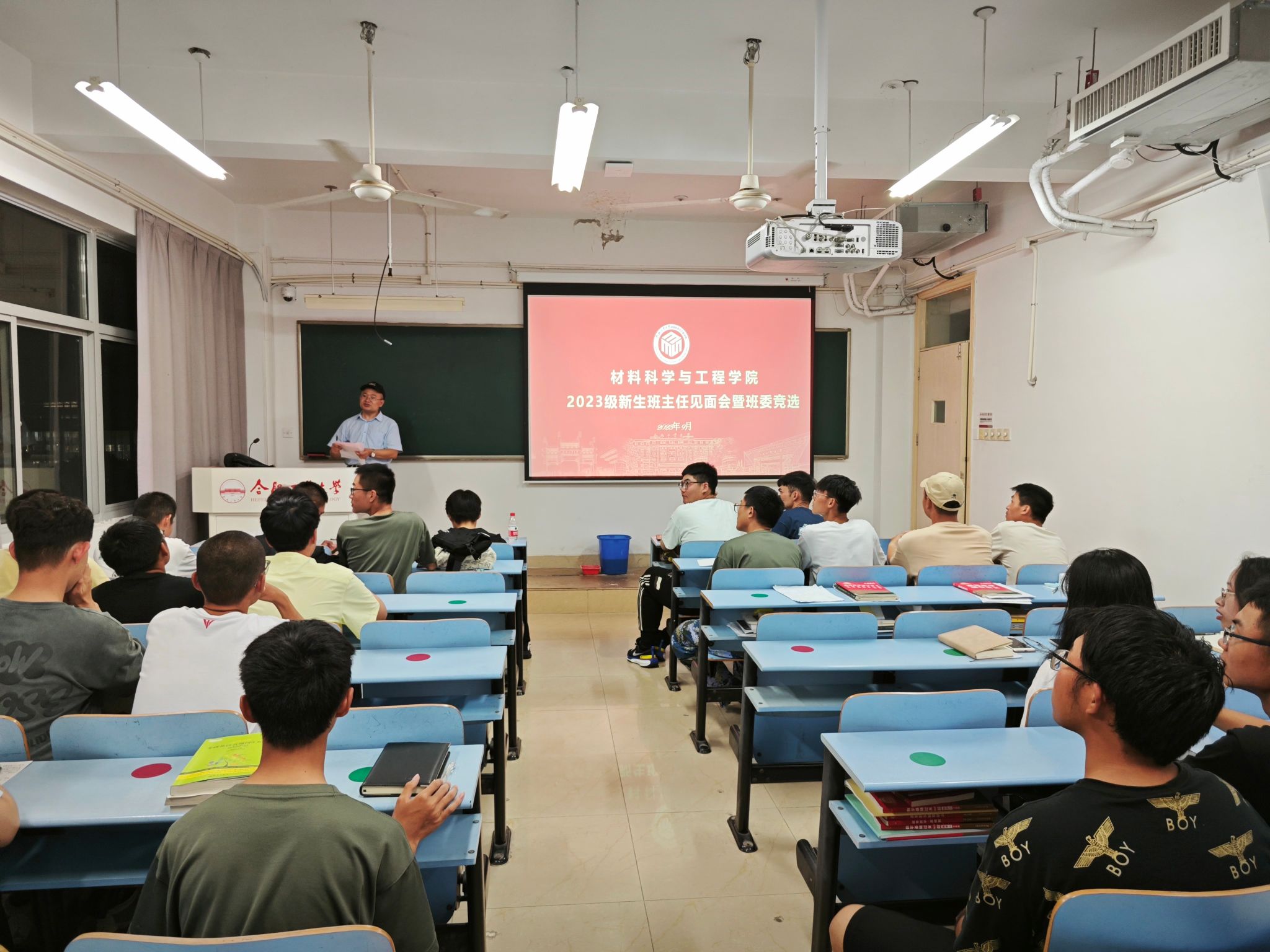 班主任作为主持人,首先介绍了自身情况、工作职责、研究方向和领域等,让同学们充分了解班主任在大学期间的作用,同时为同学们学业和职业规划提供了诸多建议。随后,同学们依次进行了自我介绍,并通过民主方式进行了班委竞选。班主任在总结中表示,班级建设离不开每一位同学的支持与配合,希望大家共同努力建设有良好氛围和扎实学风的班集体。班主任还强调了大学自主学习能力的重要性,鼓励同学们主动汲取专业知识,为日后在工作岗位上发光发热夯实基础。