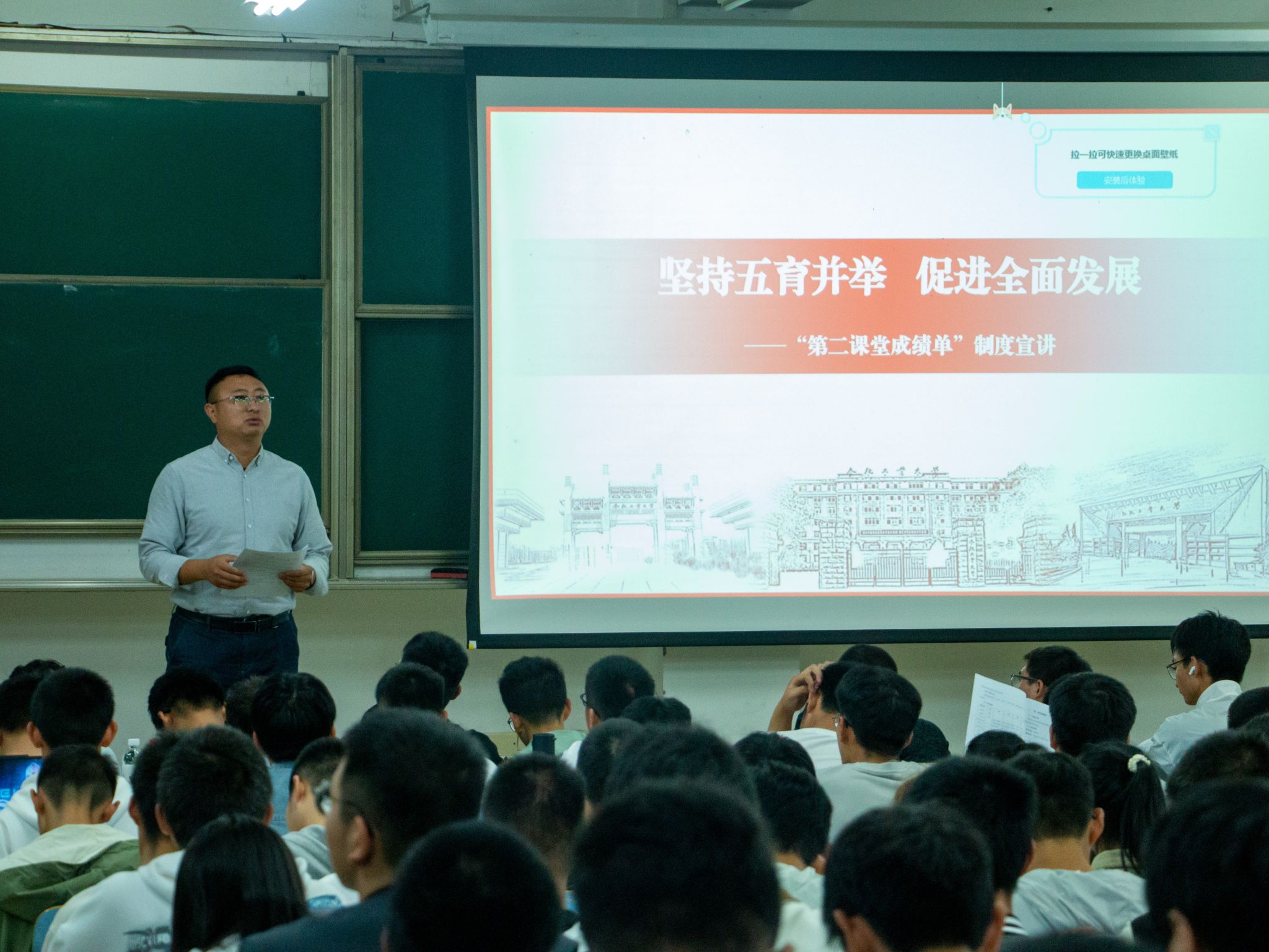10月11日晚,威尼斯9499登录入口于3教202教室组织全体学生召开“第二课堂成绩单”制度宣讲会。威尼斯9499登录入口2023级全体本科新生参加宣讲会,辅导员葛海涛担任主讲。