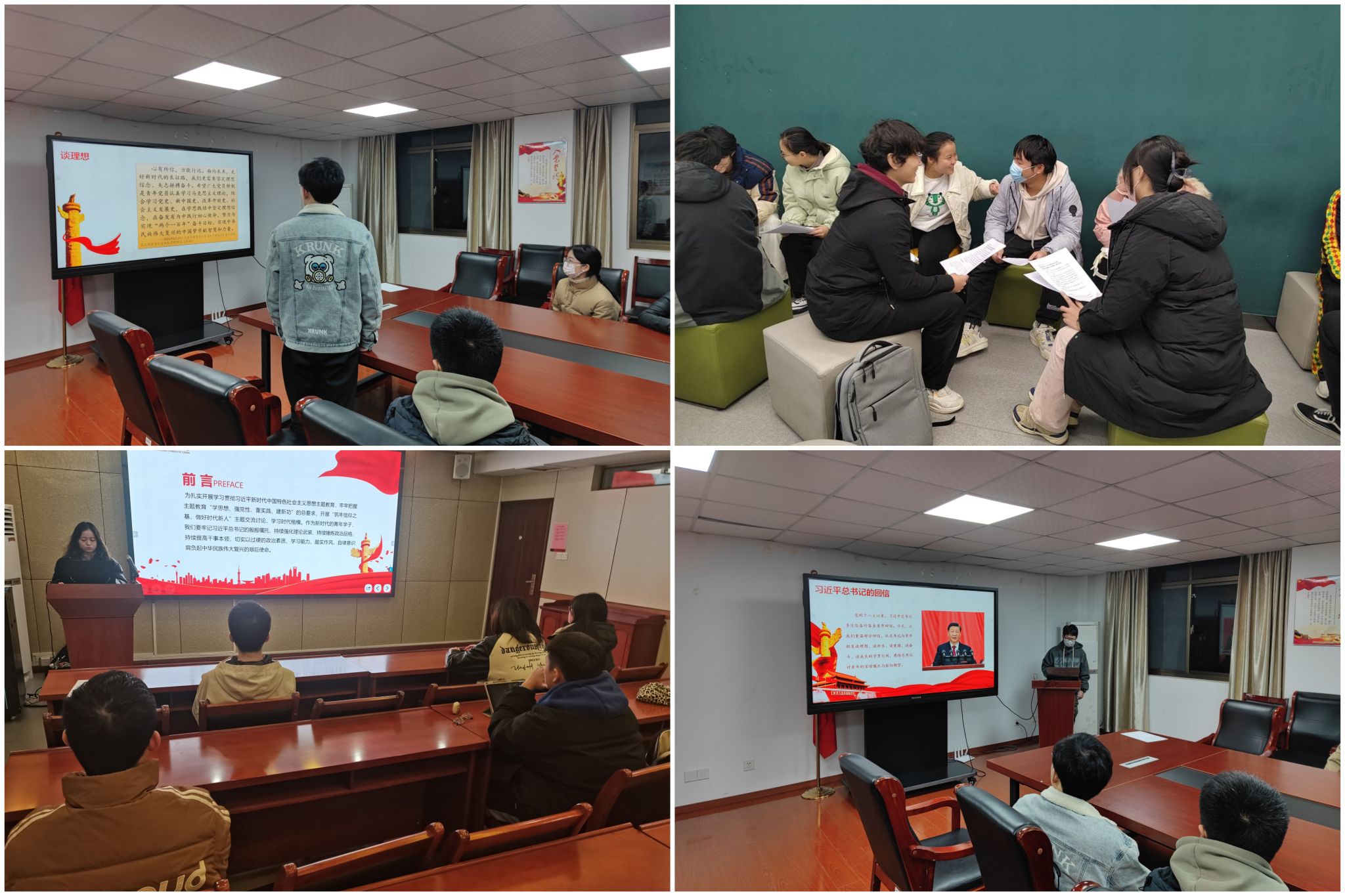 党的十八大以来,习近平总书记多次给各行各业青年回信,与青年朋友谈理想、谈担当、谈爱国、谈奋斗、谈成长。本次研学活动中,发展对象班全体学员围绕“总书记对青年的回信”这一主题,通过集体学习总书记的回信内容,在谈理想、谈担当、谈爱国、谈奋斗、谈成长五个方面,选取了总书记的5封回信进行集体研学,在字里行间中,感悟总书记对青年的深情嘱托与殷切期望。