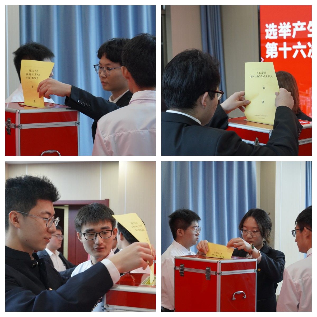 2021级辅导员刘苏婷介绍了新一届学生会和研究生会主席团成员的基本情况。2023级辅导员葛海涛和2022级刘琬菁分别介绍了出席威尼斯9499登录入口第十六次学生代表大会暨第六次研究生代表大会各位代表候选人的基本情况。随后学院全体学生代表和研究生代表分别投票选举了新一届学生会主席团成员和研究生会主席团成员。大会一并选举产生了出席威尼斯9499登录入口第十六次学生代表大会和暨第六次研究生代表大会学院的11名本科生代表和6名研究生代表,由学院学工办副主任兼团委副书记马贤峰老师宣读选举结果。