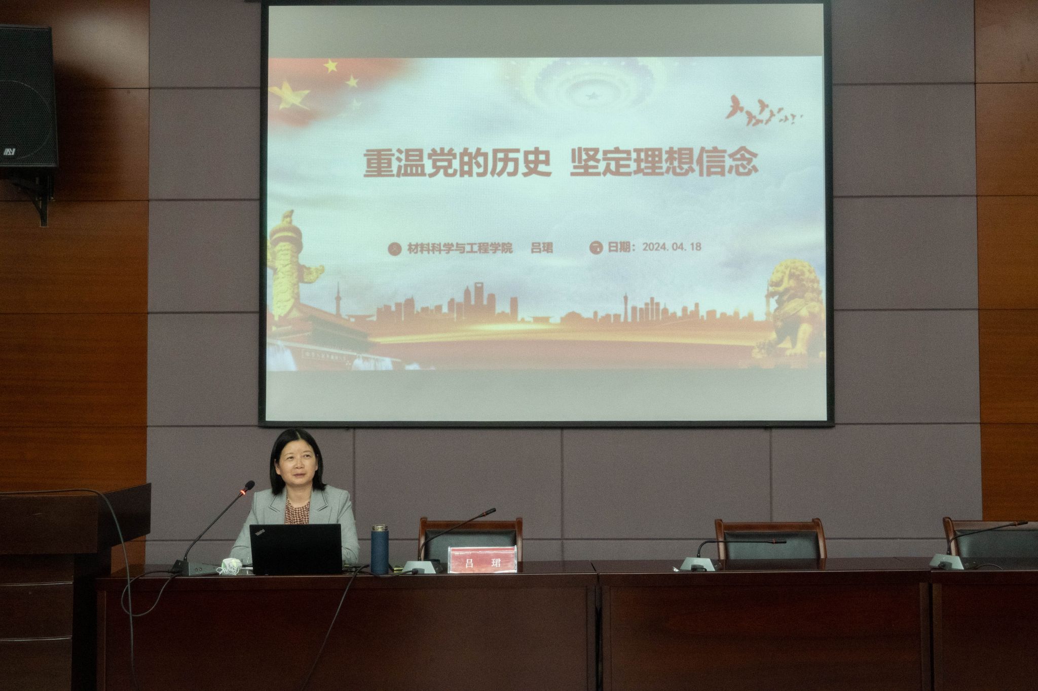 开班典礼结束后,学院党委书记、分党校校长吕珺老师以“重温党的历史,坚定理想信念”为主题,开展专题党课讲授。她从“三个必然要求”和中国共产党人的“初心使命”出发,阐述历史是最好的教科书,向学员们诠释了学习中国共产党的党史意义,解释了“为何而学”。随后,以时间线贯穿,详细介绍了中国共产党党史的四个发展历程即新民主主义革命时期、社会主义革命和建设时期、改革开放和社会主义现代化建设时期,以及中国共产党历次全国代表大会的地位和意义,引导学生深入学习党的百年历史,准确把握党的建设发展历程和所取得的巨大成就。最后,吕珺老师带领全体学员学习贯彻党的二十大精神,深刻思考“学而何为”,呼吁青年学子永远跟党走,奋进新征程,在以习近平同志为核心的党中央正昂首阔步的走向新征程,为实现中华民族伟大复兴的中国梦而不懈奋斗。