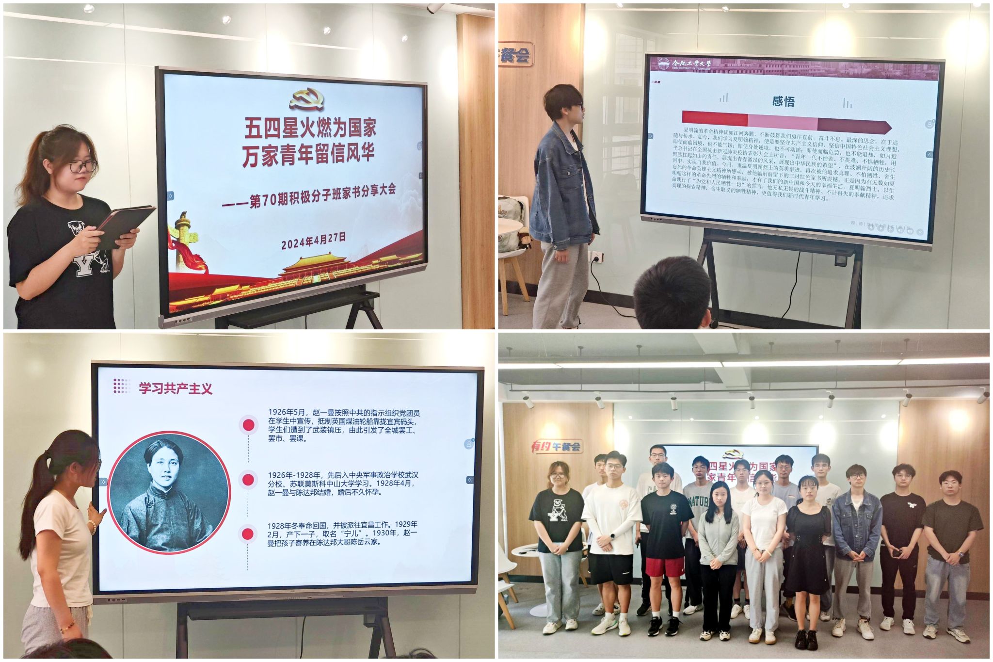 5月11日,威尼斯9499登录入口在翡翠湖校区四号楼学生社区沙龙空间举办“五四星火燃为国家,万家青年留信风华”新时代青年家书诵读活动,威尼斯9499登录入口第70期全体积极分子参加活动。