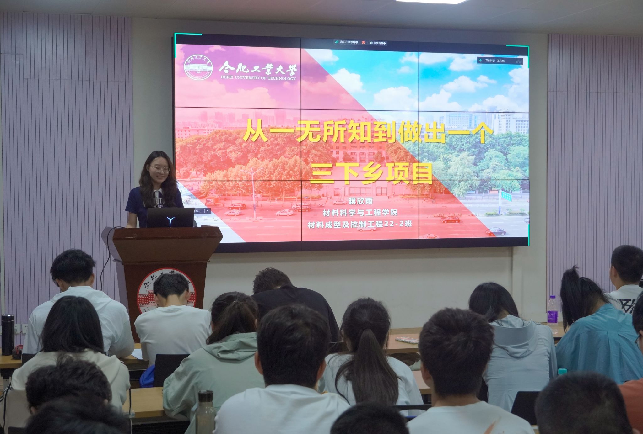 本次分享会邀请了学院往届曾多次获批团中央国家级志愿服务专项、国家级/省级“三下乡”团队立项,实践成果获得国家级、省级、校级优秀荣誉的5名优秀学生代表参与分享。分享会中,2021级本科生李甲庚、黄彦涛分别围绕暑期“三下乡”社会实践活动的主题选择、团中央专项计划申报展开介绍,为同学们分析了主题选定、项目设计中的重点要点、注意事项。2022级本科生季鹏飞、陈子聪、濮欣雨则结合自身实践经历,从前期准备、校地联络、项目申报、实践过程、成果凝练、困难不足等方面进行了详细分享。随后,五位同学就现场同学提问进行一一交流讨论。