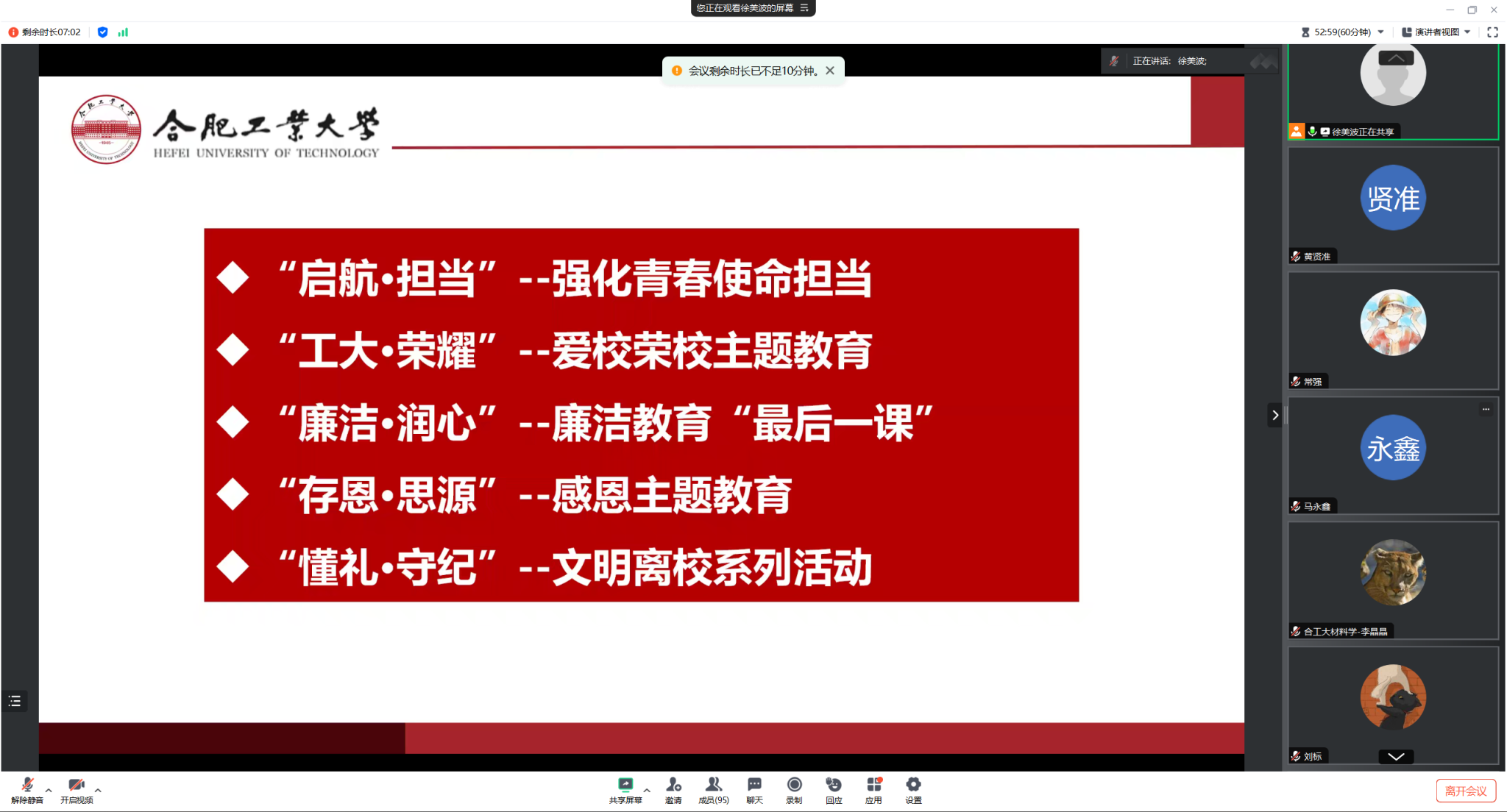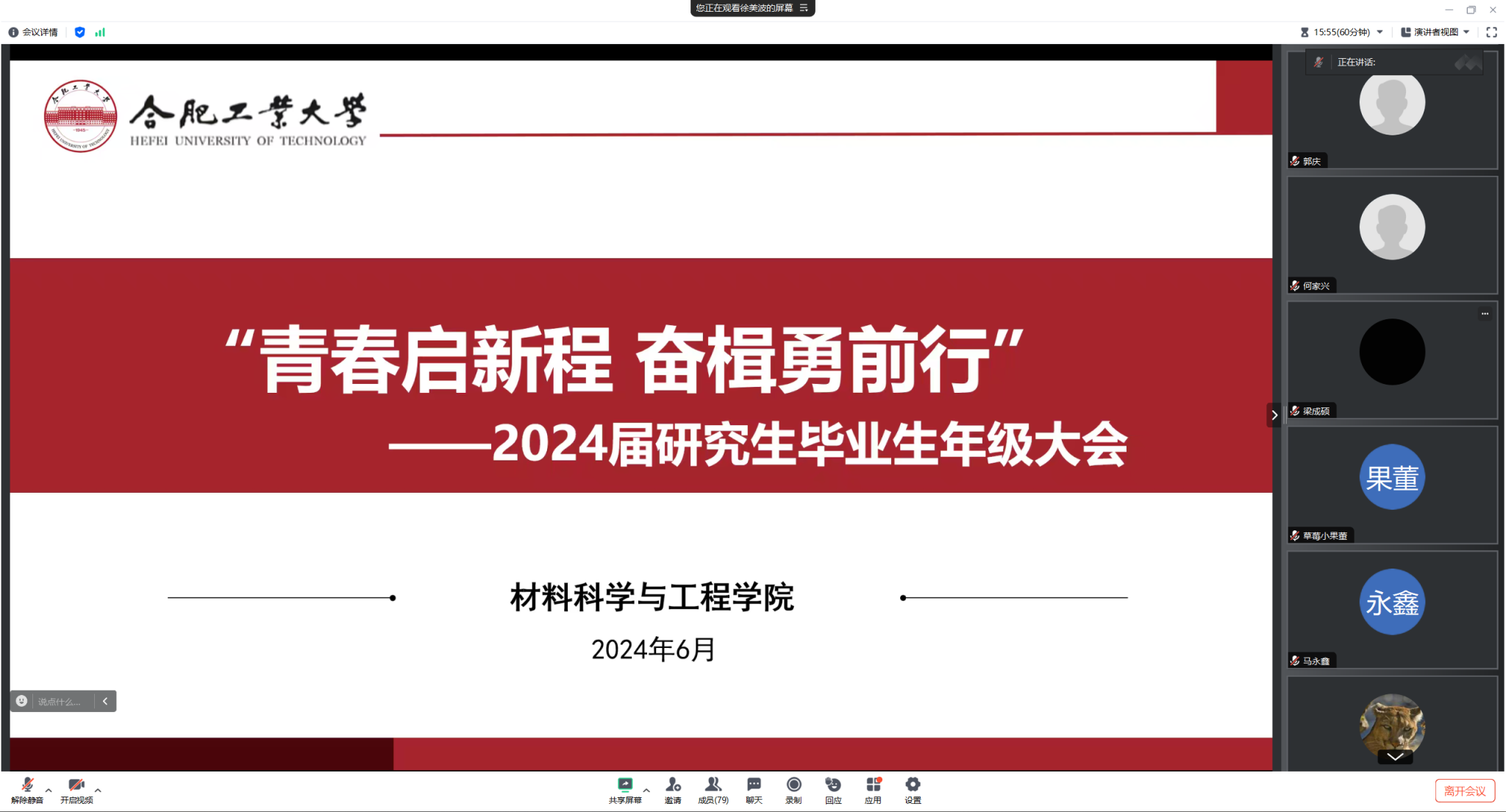 6月5日,威尼斯9499登录入口学院召开“青春启新程,奋楫勇前行”主题毕业生年级大会,研究生辅导员和全体2024届毕业生线上参加。