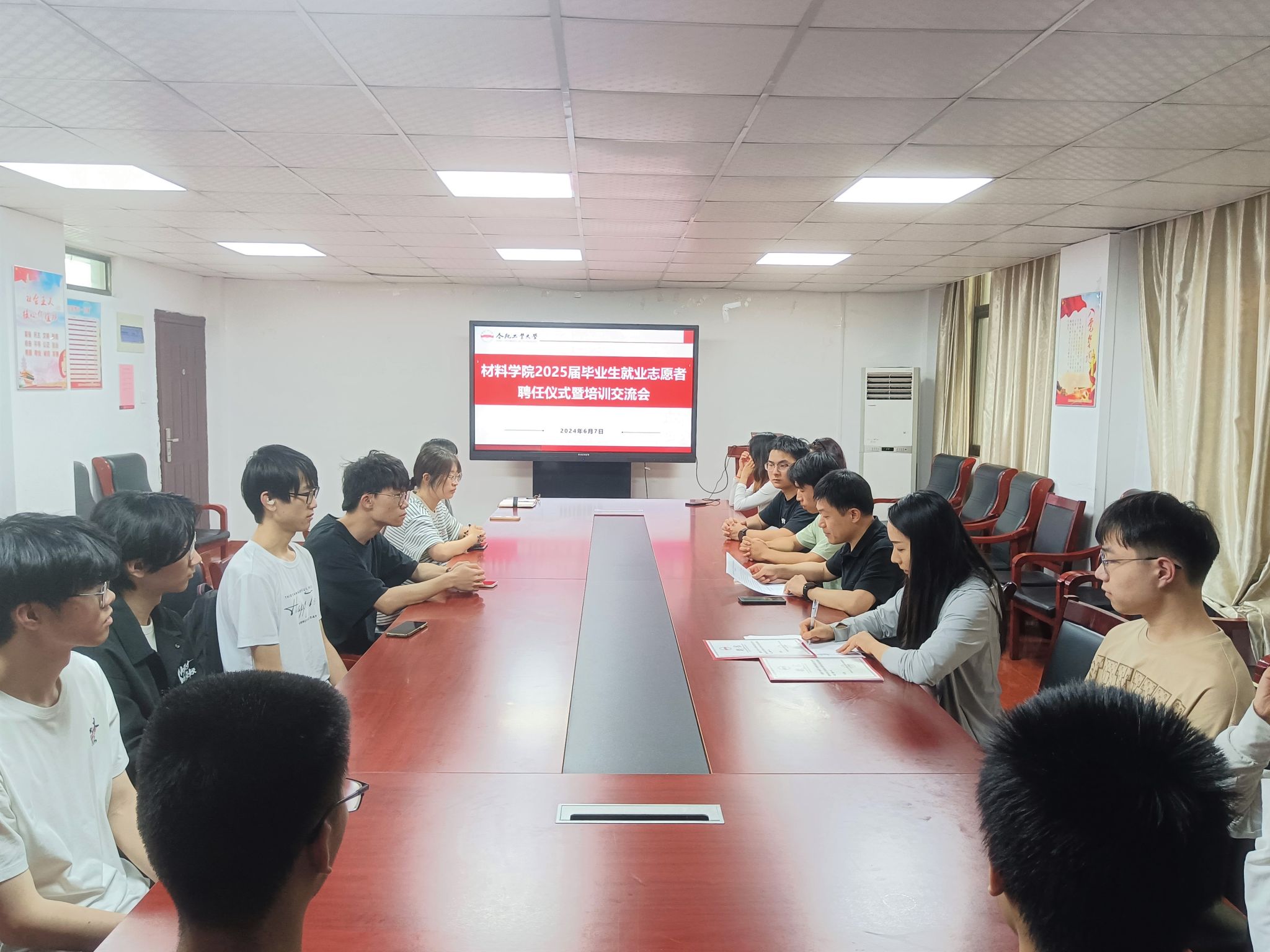 6月7日下午,威尼斯9499登录入口在材料楼党员之家举办2025届毕业生就业志愿者聘任仪式暨培训交流会。学院相关负责人、2025届毕业班辅导员和全体就业志愿者参会。