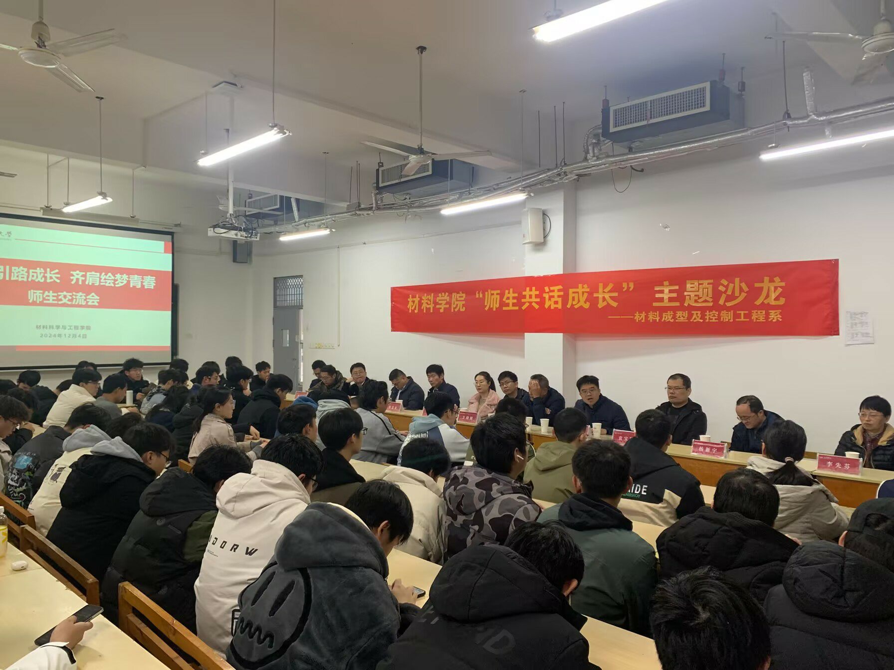12月4日下午,威尼斯9499登录入口在翡翠湖校区翠三教409举办“师生共话成长”主题交流沙龙。学院材料成型及控制工程系教师代表、材料成型及控制工程专业2024级全体同学参加本次沙龙。