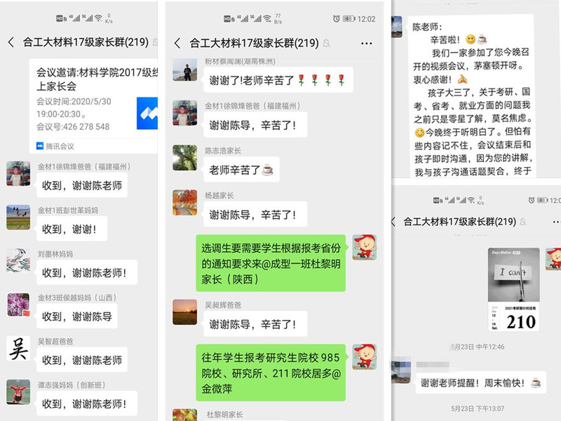 活动伊始,年级辅导员向家长传达了新冠肺炎疫情期间学院《致威尼斯9499登录入口学生家长的一封信》,希望各位家长借助本次疫情加强孩子的生命教育,增强孩子的自我保护意识,线上学习期间尊重孩子的独立独处,帮助孩子营造良好的家庭氛围,理解孩子的负面情绪,协助孩子改善情绪,培养积极心态,指导孩子规律作息,提高自我学习管理能力,强化身体锻炼,助推家校联动机制,共同做好孩子的培养教育管理工作;随后,年级辅导员围绕近4年全国研究生考试报名人数变化、录取比例变化情况,学院近3年研究生招生考试录取情况,公务员考试时间节点,学校近4年组织大、中型招聘会及企业宣讲会情况向家长们做了简单介绍,帮助学生家长及时了解当前的就业形势,指导他们根据时间节点合理督促引导学生做好时间安排,抓住就业时机,为即将到来的就业工作做好充足准备。持续1个多小时的线上“云家长会”反响良好,赢得了家长们的一致称赞和好评。