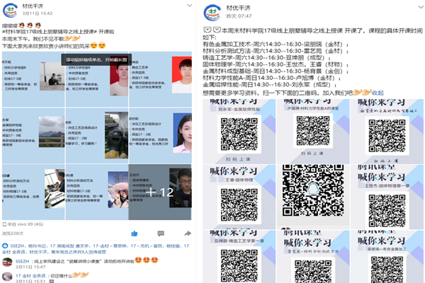 践行雷锋精神,立足促进学业发展——积极开展“材优干济”系列学风建设。为做好疫情期间线上教学服务工作,威尼斯9499登录入口以“学优创优,做最美材料人”为主题,立足年级QQ公众号、腾讯课堂等网络平台,建立线上学业帮扶平台,积极组织学生党员、学生骨干发挥榜样示范作用,先后推出朋辈辅导之“笔尖课堂” “知识点短视频分享” “小讲师特色课堂”等主题学风建设活动,通过分享优秀习笔记、学习经验、学习成果,加强朋辈辅导帮扶力度,帮助学生养成良好的线上学习习惯,对线上学习困难学生,开展“特色小课堂”线上朋辈交流答疑,营造了良好的线上学习氛围。