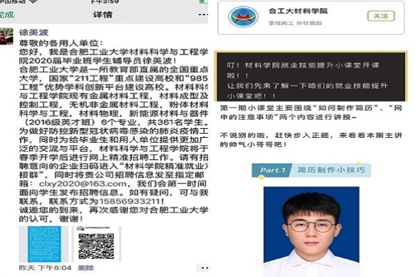 创新举措,精准服务,提升毕业生线上就业实效。面对新冠肺炎疫情,为了给毕业班学生提供更多更优质的就业机会,学院创新工作形式,加大“互联网+就业”的工作力度,建立“威尼斯9499登录入口精准就业对接群”,截止到目前为止,已与近70家企业取得联系,为网络精准就业做好充分准备。针对就业技巧方面,在毕业班成立了“就业技能提升小战队”,录制技能提升小课堂系列视频,为待就业的同学们提供就业经验分享,提高就业技能,提前做好迎接春招的各项准备。为帮助学生提高就业信心,毕业班辅导员还一对一在线帮助学生修改简历。一系列创新举措,大大提升了线上就业的实效。