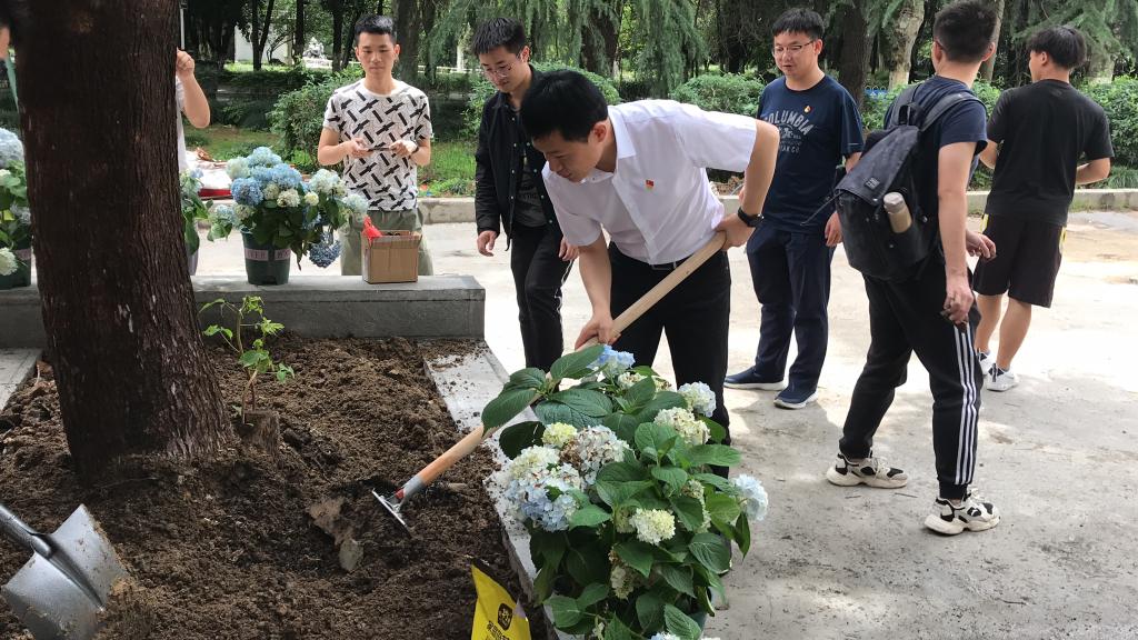 为庆祝中国共产党建党100周年,在党史学习教育中结合学校关于“爱校荣校”和“我为群众办实事”的要求,充分发挥劳动教育在立德树人中的重要作用,5月27日上午10时,威尼斯9499登录入口机关党支部与本科生第一党支部联合开展了以“师生党员齐种花,爱校荣校办实事”为主题的党日活动。
