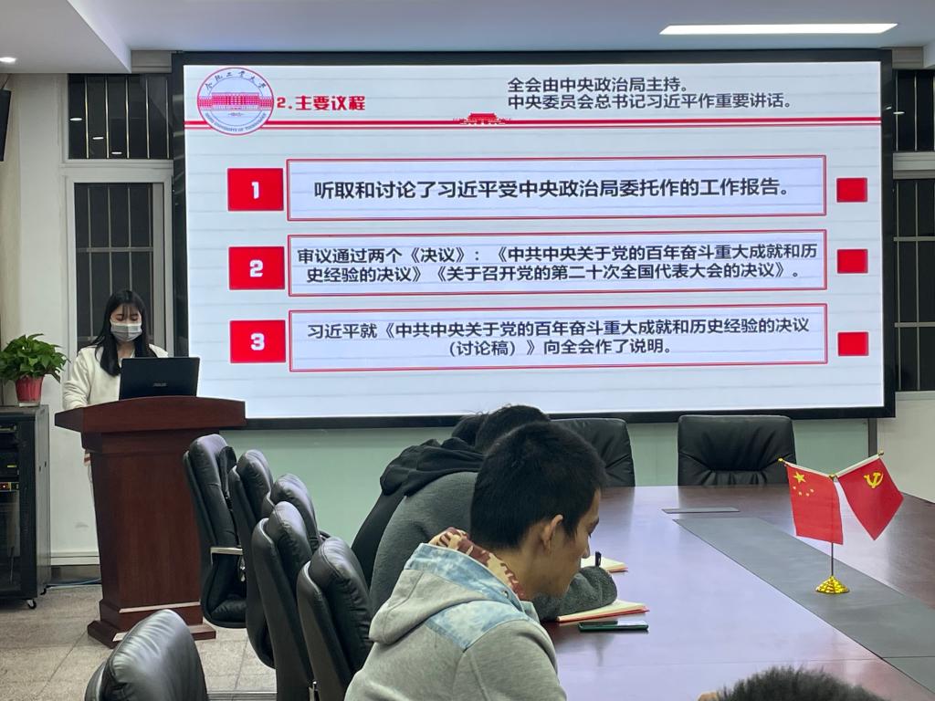 11月26日晚,威尼斯9499登录入口研习社联合本科生第三党支部在小红楼会议室开展“学习十九届六中全会精神”专题研讨活动。本次活动由研习社负责人主持,研习社成员及第三党支部全体支委参与活动。