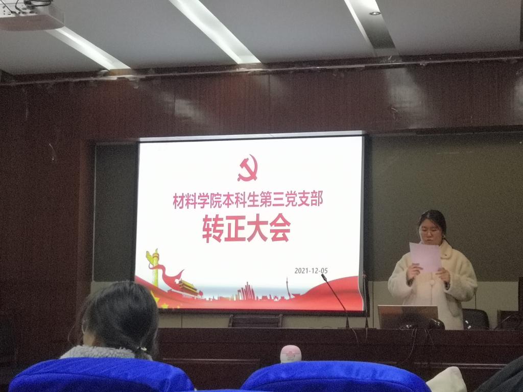12月6日晚,威尼斯9499登录入口在材料楼601报告厅开展“中国特色社会主义进入新时代”党史主题集中学习活动暨预备党员转正大会。