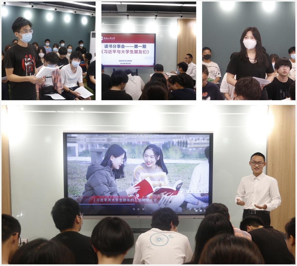 读书分享会包括了理论学习、视频观看、交流研讨等环节。学院团委相关负责人介绍了《习近平与大学生朋友们》一书的创作背景、内容简介和作品评价等。《习近平与大学生朋友们》通过25篇访谈实录,讲述了1983年12月至2019年7月间,习近平同志在河北正定、福建、浙江、上海和到中央工作以来,与大学生们交往交流交心的故事,真实记录了他对青年特别是大学生始终如一的关注关心关爱。该书是深入学习习近平总书记关于青年工作的重要思想的鲜活读本,对做好新时代青年工作、助力当代青年健康成长具有重要示范意义。