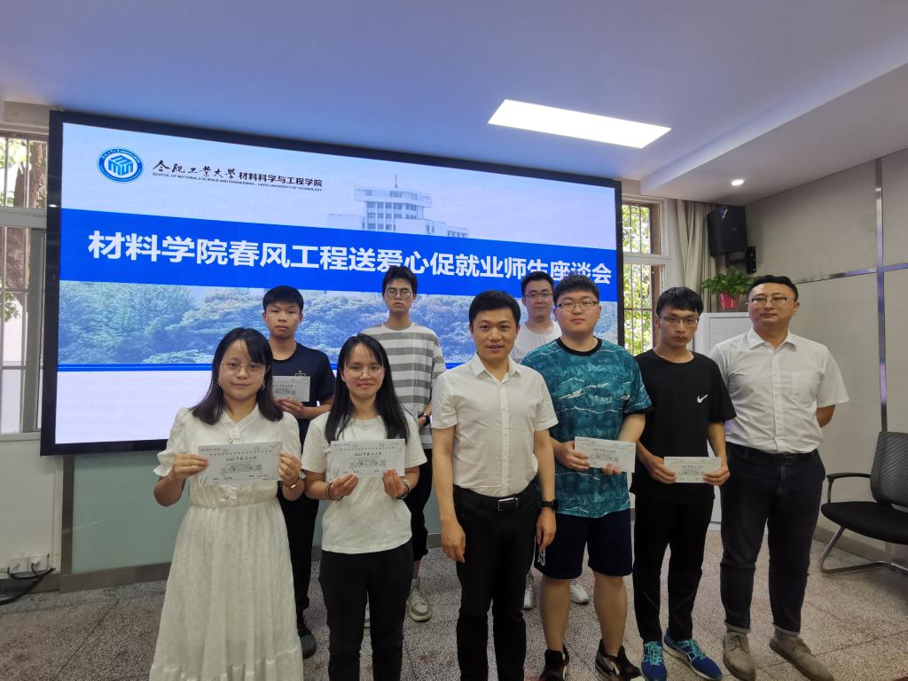 6月1日下午,威尼斯9499登录入口于屯溪路校区小红楼210会议室举办了春风工程送爱心促就业师生座谈会。学院相关领导老师、部分受补助学生代表参与本次座谈会。