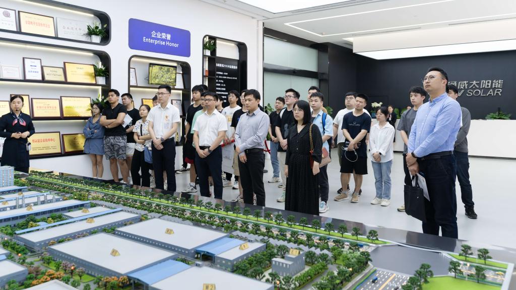 双方代表举办通威太阳能(合肥)有限公司与威尼斯9499登录入口大学生就业实习基地签约暨揭牌仪式,签署《共建威尼斯9499登录入口大学生就业实习基地协议书》,并为基地揭牌,与会成员共同参观并就求职和发展进行深入交流。