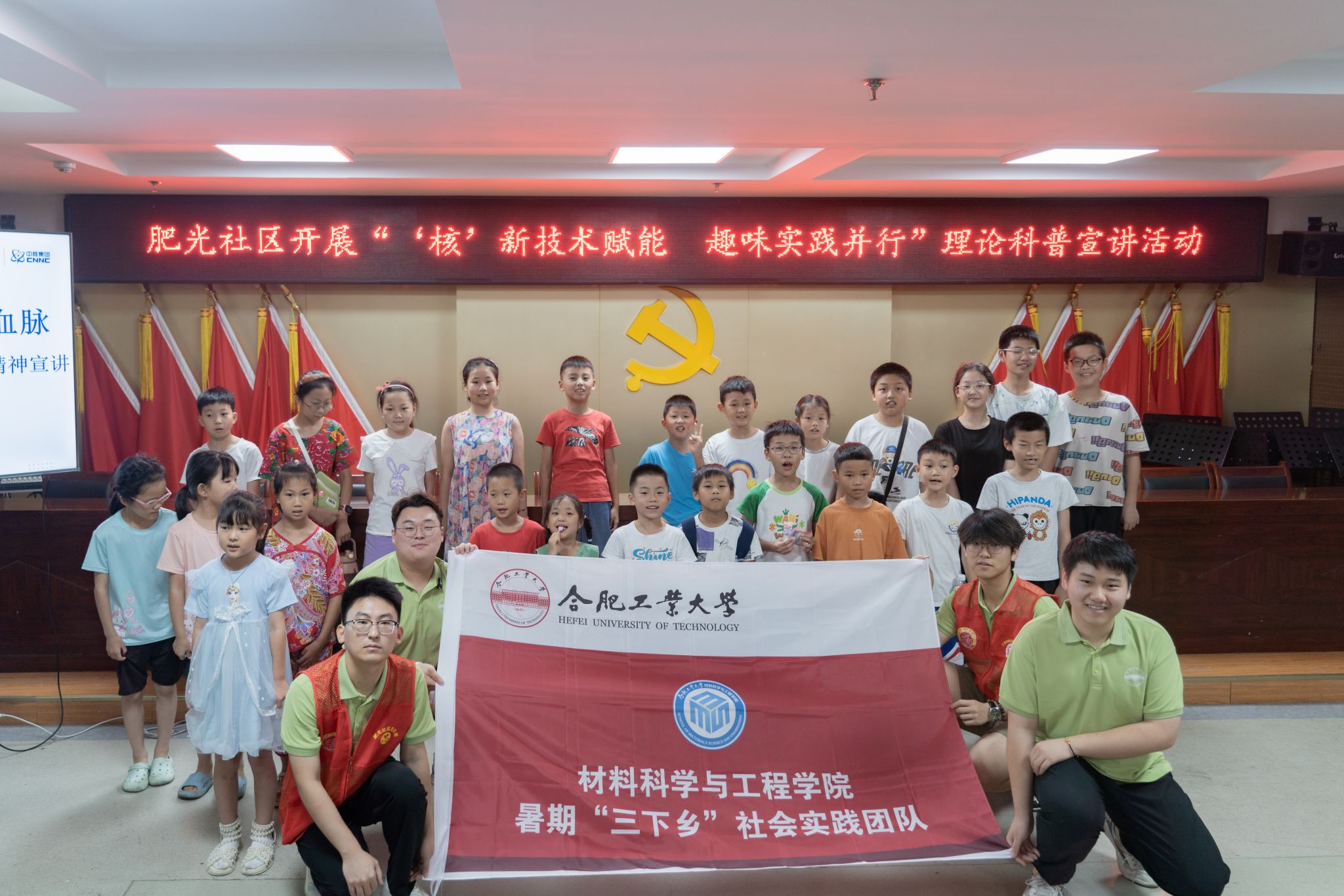 为深入学习宣传贯彻习近平新时代中国特色社会主义思想和党的二十大精神,落实“强国复兴有我”群众性主题宣传教育活动相关要求,纪念中国第一颗原子弹成功爆炸60周年,弘扬“两弹一星”精神。2024年7月9日下午,威尼斯9499登录入口“探赜两弹红色基因,赓续先辈精神血脉”“三下乡”暑期社会实践团队深入社区街道,联合肥光社区党群服务中心开展主题科普系列活动。
