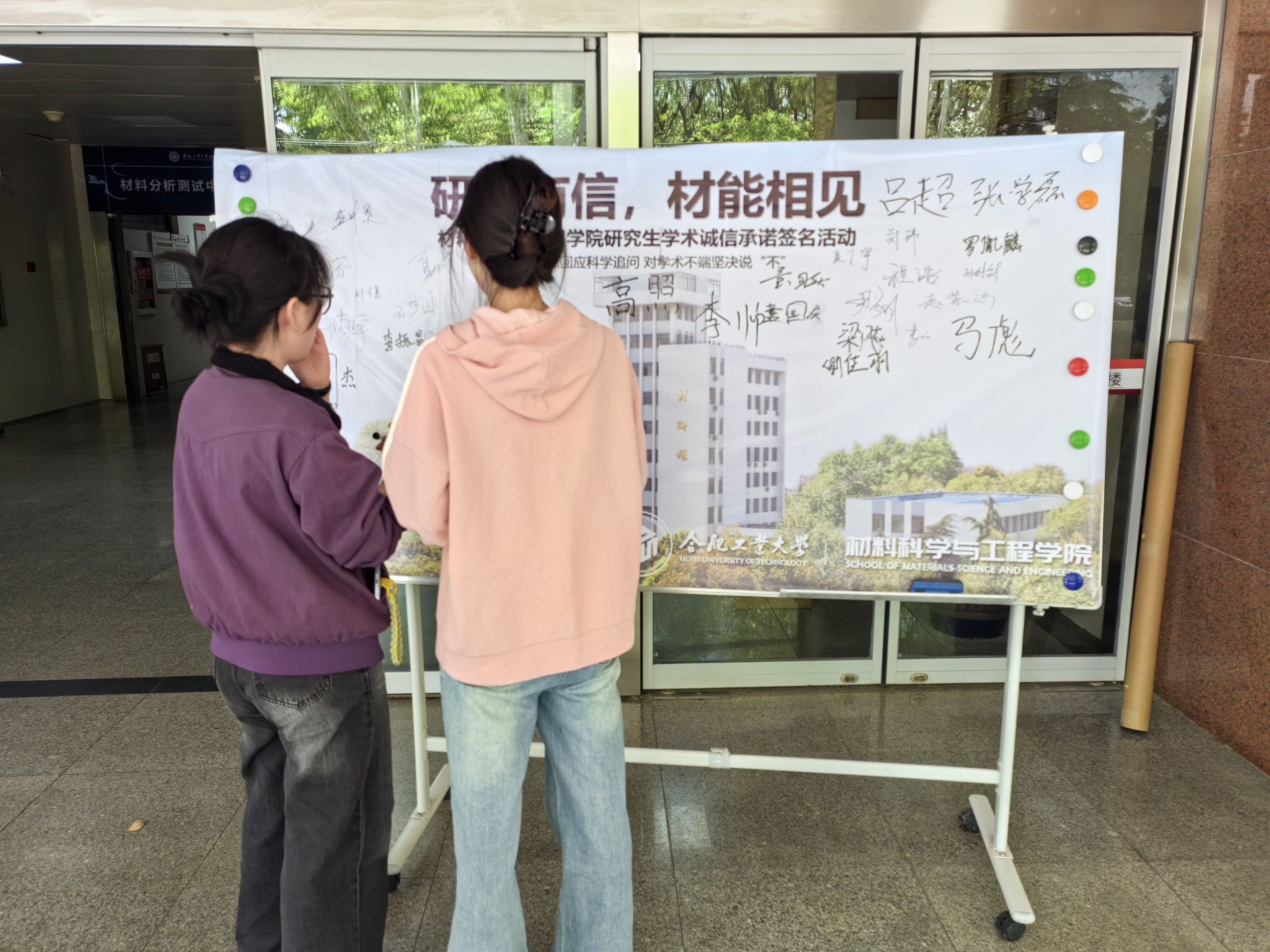 为弘扬科学精神、强化学术诚信意识,营造风清气正的科研环境,威尼斯9499登录入口于4月25日上午,在材料楼举办“研而有信,材能相见”学术诚信主题教育活动,活动通过宣誓签名、案例警示、互动问答等形式,吸引了80余名研究生参与。
