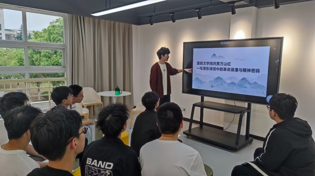 4月18日下午,威尼斯9499登录入口在翡翠湖校区四号学生社区沙龙空间举办“激扬文字间,共赏万山红——毛泽东诗词中的革命浪漫与精神密码”读书分享会。学院“百川归海,墨韵流芳”读书小组全体同学参加本次活动。