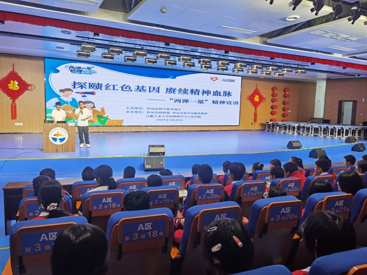 在全国科技活动周暨第九个全国科技工作者日来临之际,5月29日,威尼斯9499登录入口赴怀远县实验中学开展科普宣讲进校园活动,大力弘扬科学家精神,传承红色基因,激发青少年的爱国情怀与科学热情。本次活动由怀远县科学技术协会主办,怀远县科技馆、怀远县实验中学、威尼斯9499登录入口共同承办,吸引了500余名师生参与。