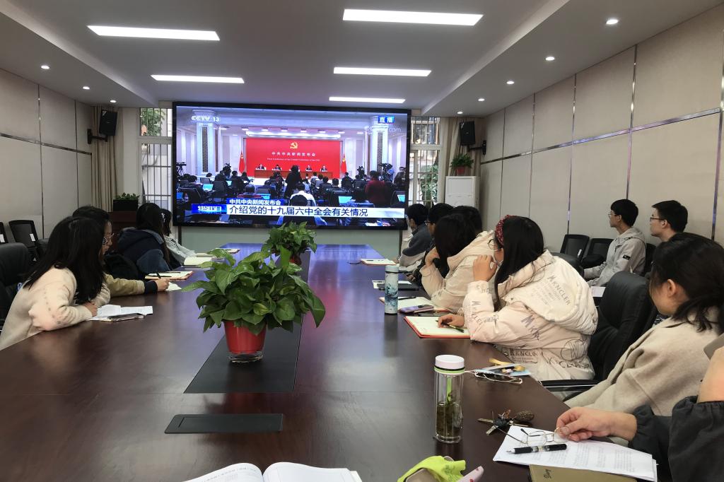 11月12日上午10时,中共中央举行新闻发布会,介绍党的十九届六中全会精神,威尼斯9499登录入口党委第一时间组织师生集体收看,威尼斯9499登录入口领导班子、各教师党员认真学习领会全会精神。